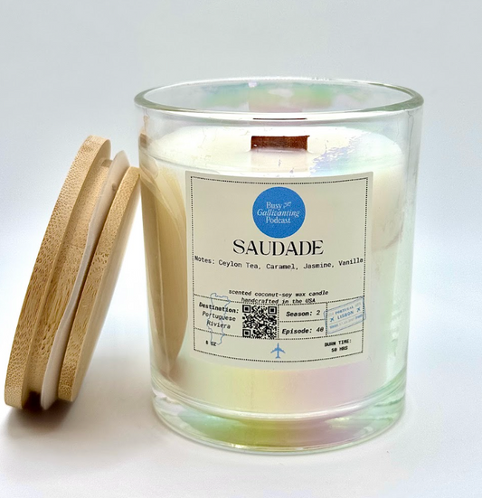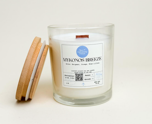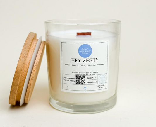 Busy Gallivanting Candles are inspired by specific podcast episodes and the knowledge that fragrance is intrinsically linked to memory.